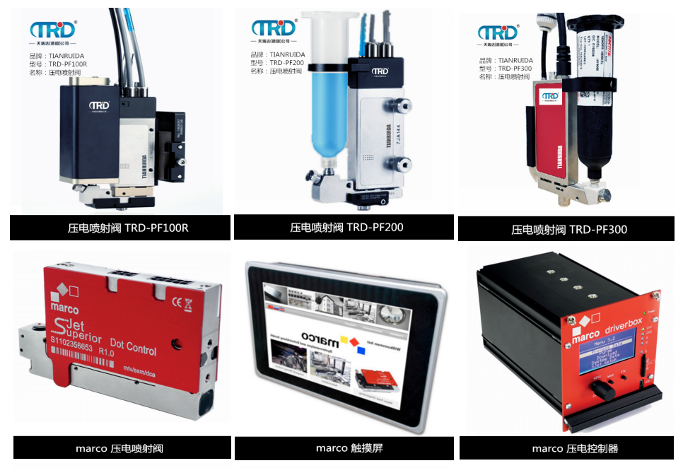 TRD-PF100R壓電噴射閥采用高精度點膠;精致模塊化設計,非接觸式噴射點膠,不存在接觸式點膠中因針頭和與目標表面接觸而導致的點膠污染現象、引線損傷以及芯片劃傷現象。無需z軸運動,實現全自動點膠機更高的生產效率;可代替人工特定的點膠作業,實現機械自動化的生產。